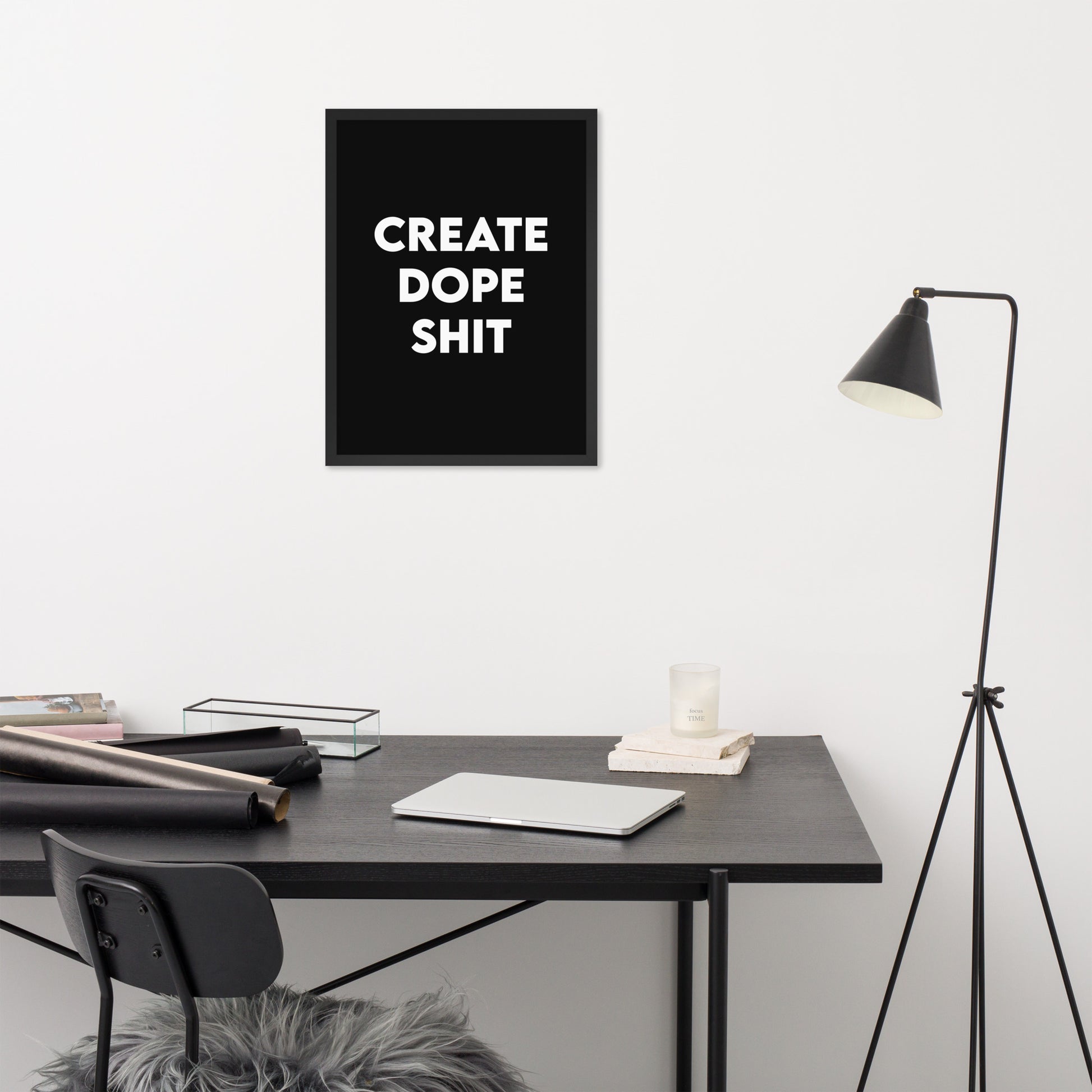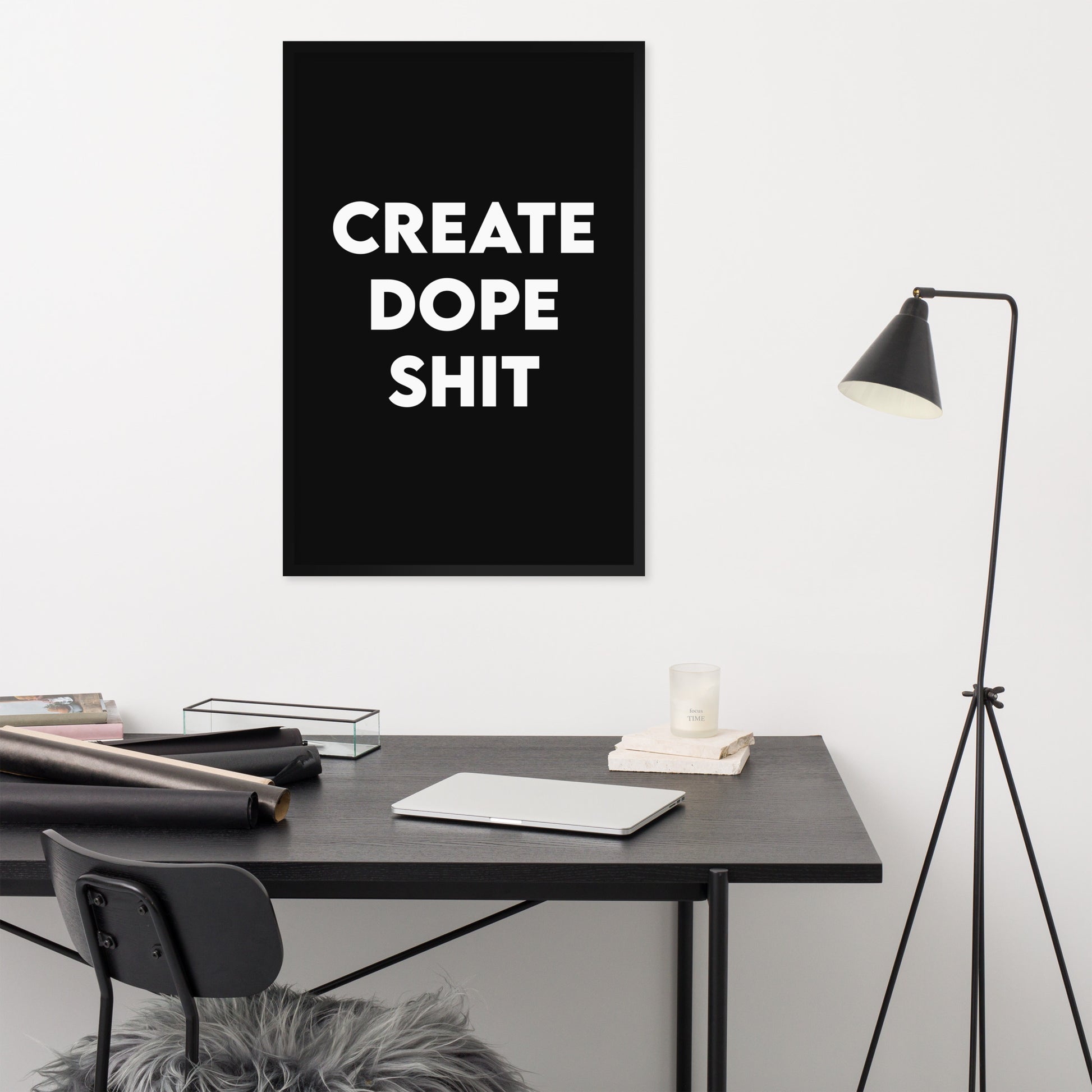 Our imagination is the most significant gift we possess. Creating dope shit requires dedication, practice, and experimentation. It also requires courage, confidence, and authenticity. Creating dope shit is a way of expressing oneself and impacting the world. It is a way of living one’s purpose and fulfilling one’s potential. If you are a creator or know someone who creates dope shit, pick up this framed poster today.